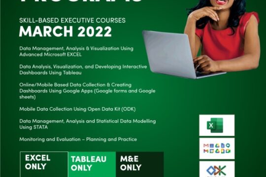 March 2022 Online Training Opportunity – Advanced EXCEL, Tableau, STATA, Open Data Kit (ODK), M&E, Mobile Data Collection & Creating Dashboards Using Google Apps, (26th Feb-19th March 2022). APPLY ONLINE TODAY! (Deadline: Thursday 24th February 2022).